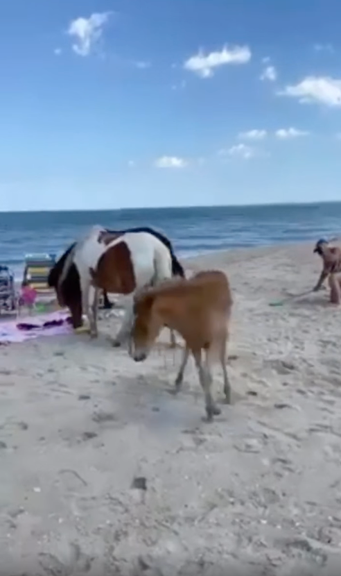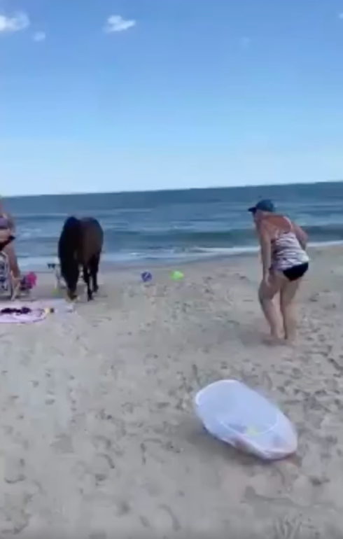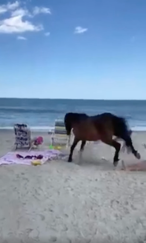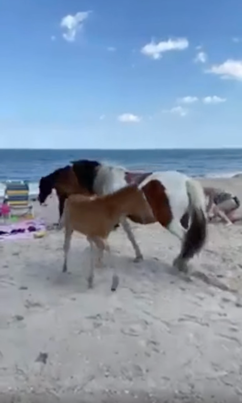 The lady looked dazed for a few seconds, rolling in the sand, while two smaller horses appeared out of nowhere to help their friend. This is why they have rules at Assateague Island specifically for these situations: “Do not touch or otherwise agitate the horses. Don’t even feed them.” There are numerous warning signs all over the island, telling the tourists the dangers of aggroing a wild horse.